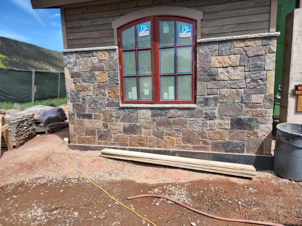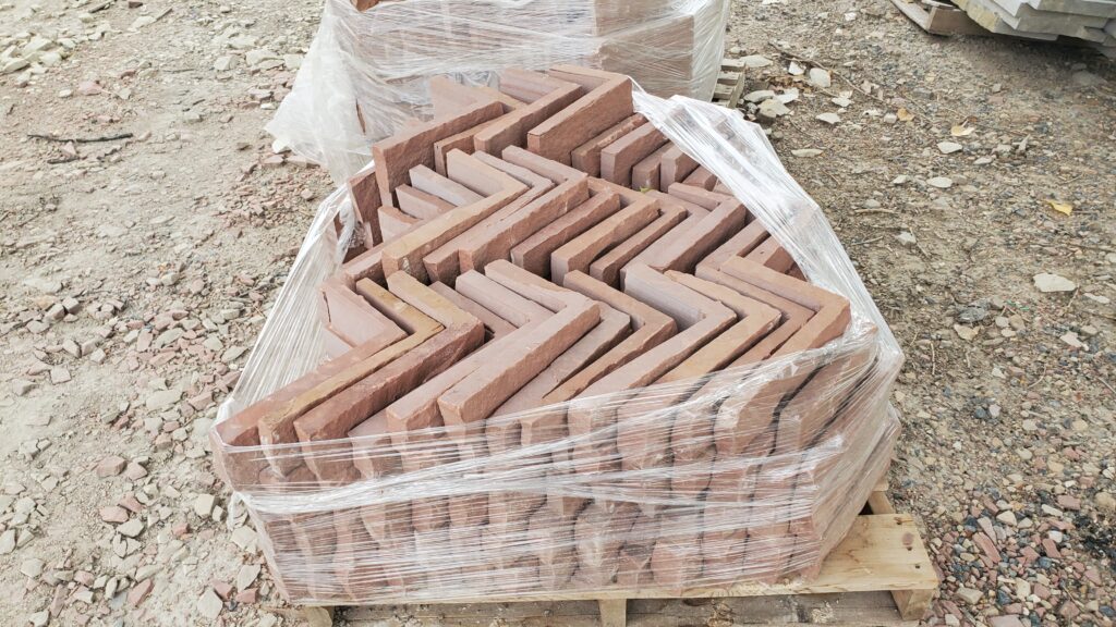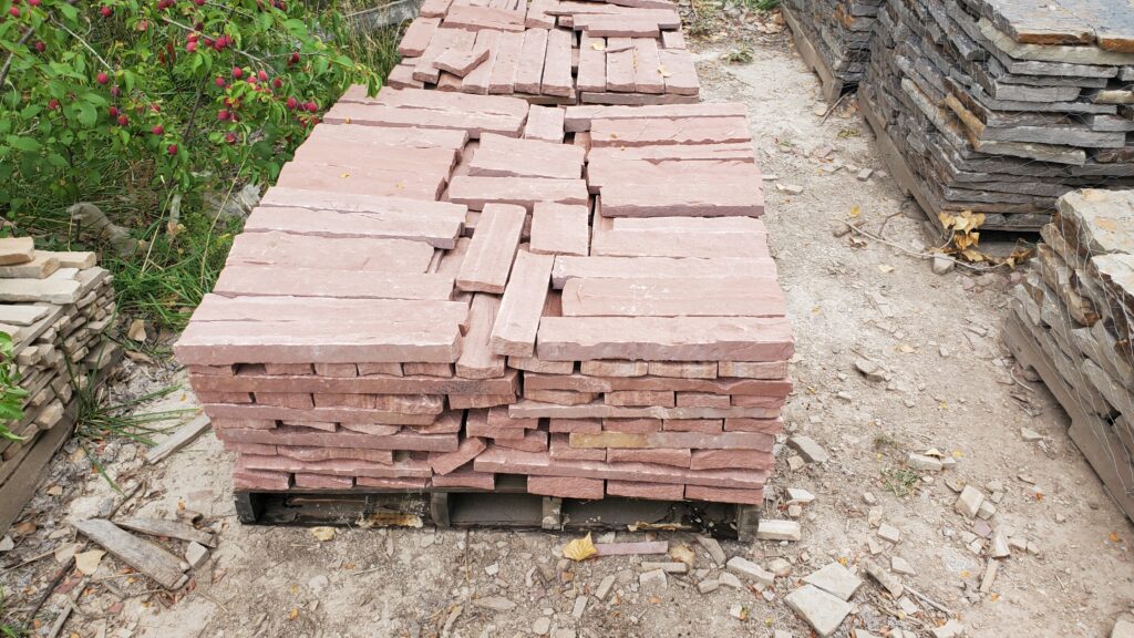 Colorado red thin veneer comes in random lengths and heights. Can be used in a dry-stack or jointed installation.