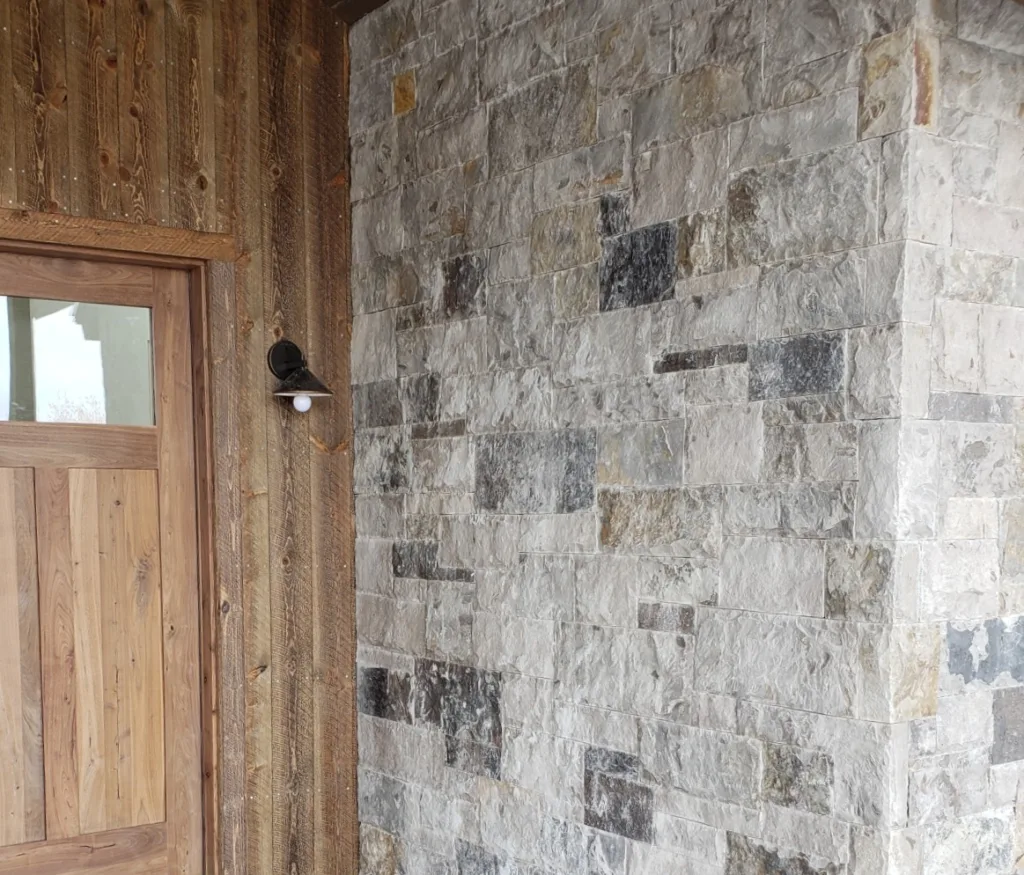 This ledgestone style veneer is made of a quartzite stone.