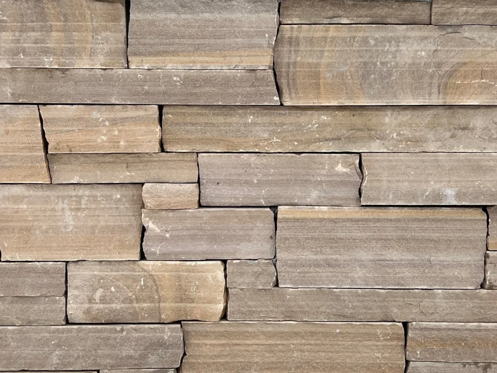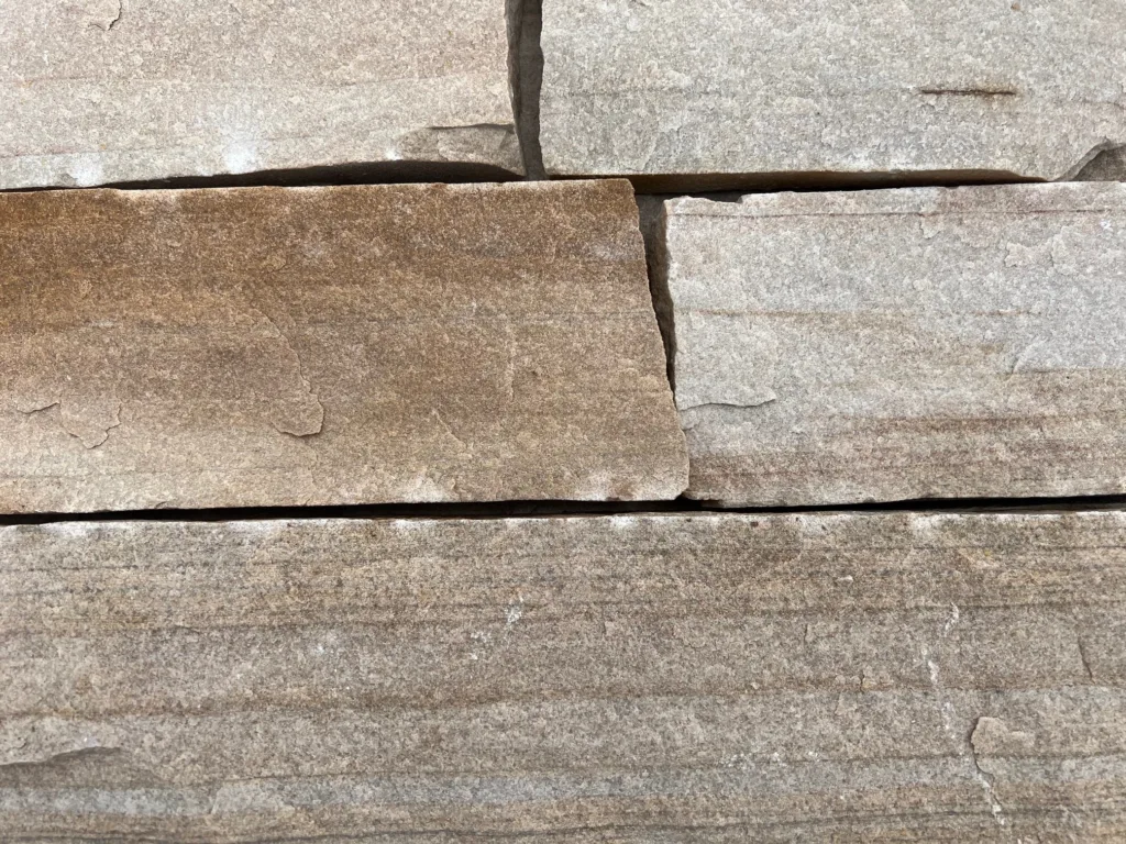 This ledgestone style veneer is made of a sandstone.